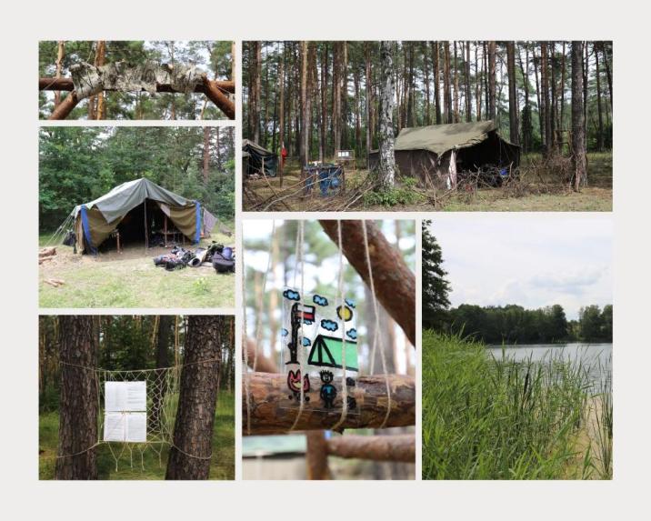 - Opis obozowisk harcerskich.