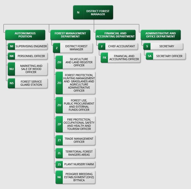 Nadleśnictwo jest podstawową, samodzielną jednostką organizacyjną Lasów Państwowych, działającą na podstawie ustawy o lasach. Podlega ono Regionalnej Dyrekcji Lasów Państwowych, prowadzącej nadzór i koordynującej działania na swoim terenie. Nadleśnictwa dzielą się na leśnictwa.